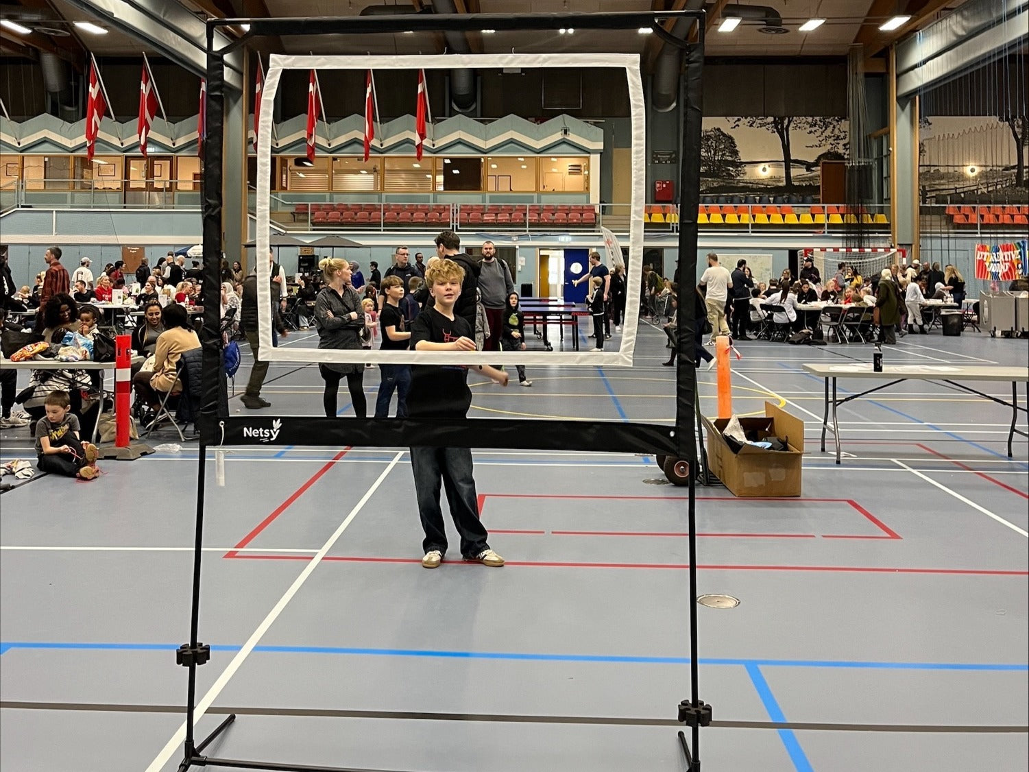 ▪ Hvidt net, metalramme, pløkker, udstyrstaske.