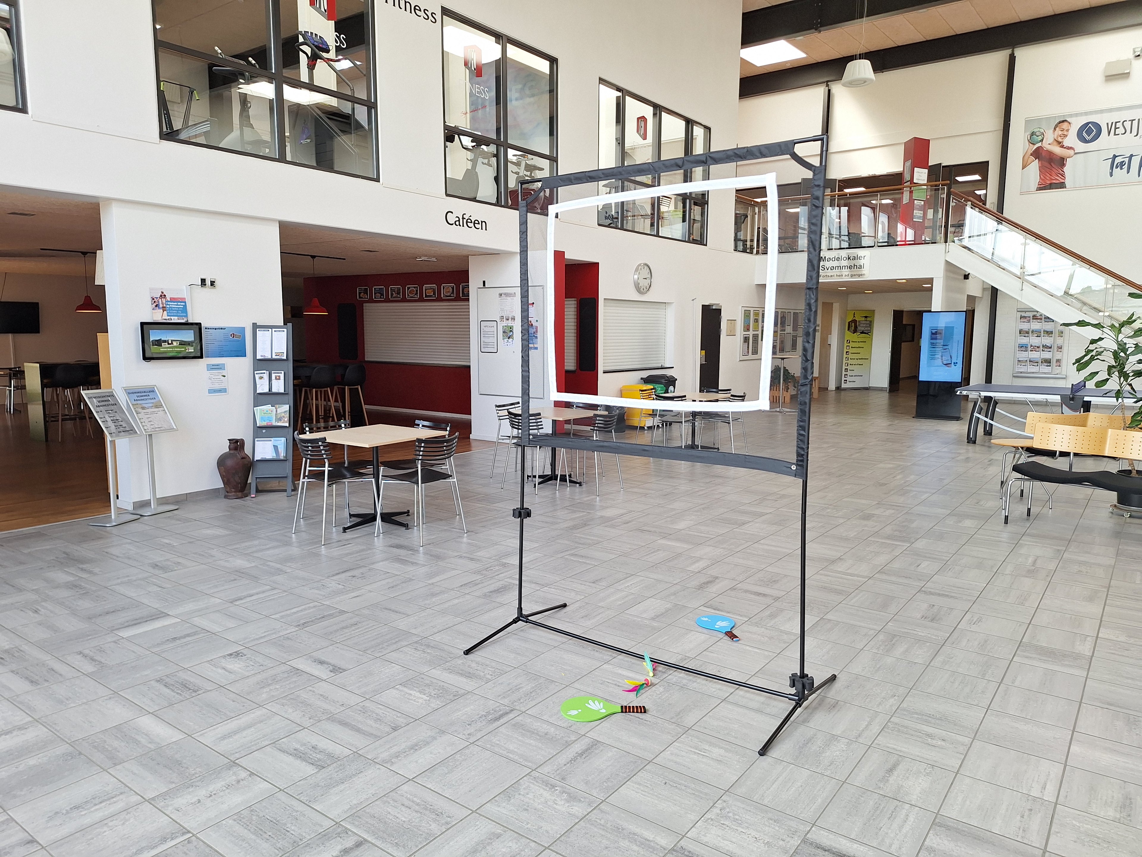 Spillet og nettet kræver meget lidt plads. Find en jævn overflade så der udover nettet er 2½-3 meters på hver side af nettet til at spille på.