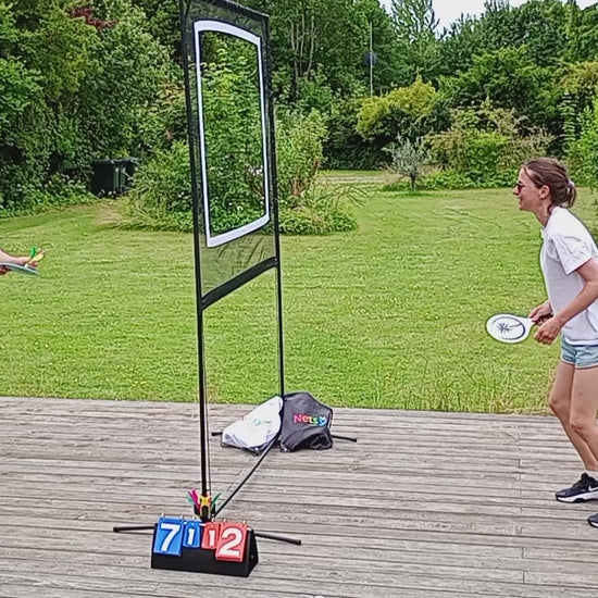Spillesættet kan samles utrolig nemt på få minutter, og der medfølger dansk samlevejledning med billeder, så du nemt og hurtigt kan begynde at spille. Husk at sikre det med de medfølgende pløkker i blæsevejr.