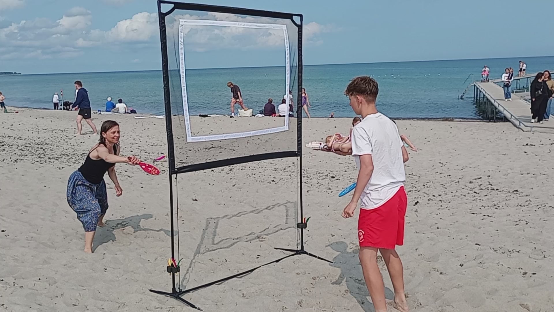 Nordic Batgame er et helt nyt spil og en aktivitet inspireret af Strandtennis, Badminton og Bordtennis. Sjovt for børn, unge og voksne. Spil i haven, stranden, gaden eller indendørs. Du får dansk samlevejledning, spilleguide og de officielle spilleregler, så du hurtigt og nemt kan komme i gang. Det her er en starterpakke hvor hvidt design net, metalramme, pløkker til vindsikring, 2 bats, 1 stk. bold (gummi) og 4 fjerbolde medfølger. Bats, bold og fjerbolde opbevares nemt og sikkert i vores gearbag - og alt til spillesættet opbevares i den medfølgende udstyrs/transporttaske. Se hele listen over hvad der medfølger nedenfor.